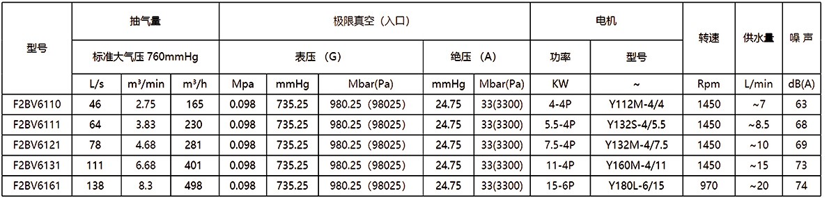 2.上列性能基于進(jìn)氣溫度20℃,進(jìn)水溫度15℃,排氣壓力1013hpa的條件,被吸入氣體為飽和空氣。(飽和空氣是指在對應(yīng)吸入狀態(tài)下,其相對濕度為100%的濕空氣。)