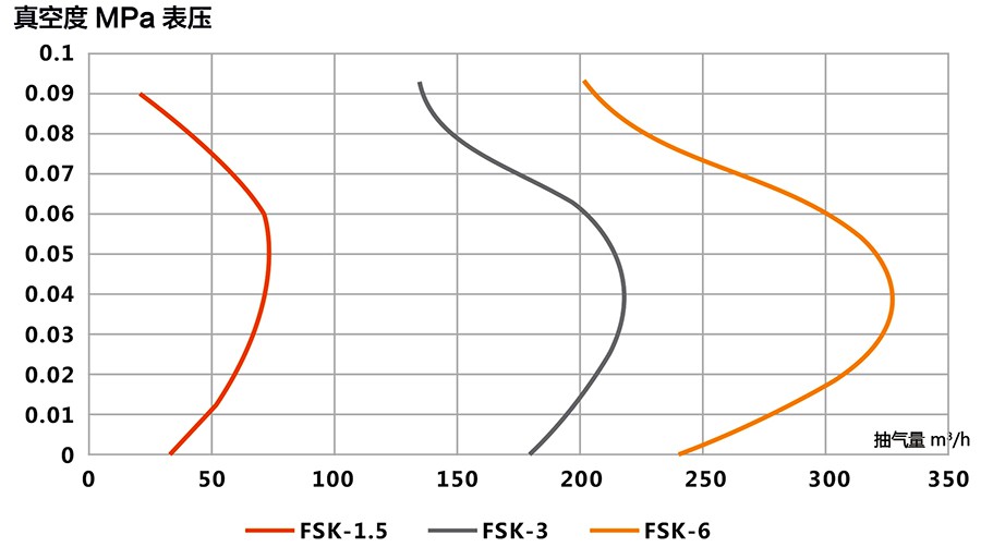 適應(yīng)于90~360m3/h的低抽氣量區(qū)間,極限真空度較低,可增加電機功率作為壓縮機使用。